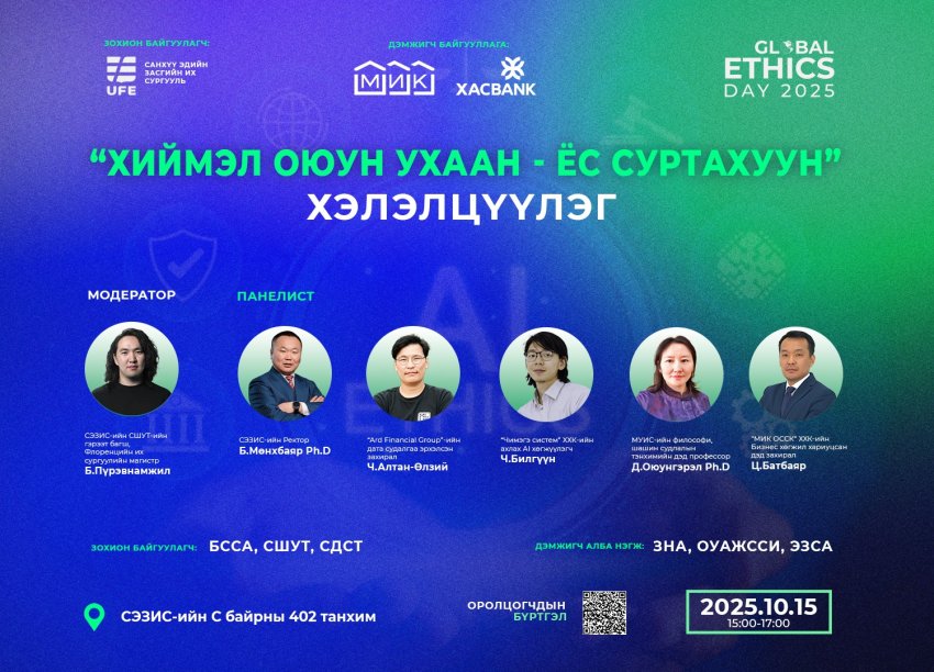 Энэ өдөр нь ёс суртахуун, шударга байдал, хариуцлага, нийгмийн сайн сайхны төлөөх манлайллын үнэ цэнийг эргэн сануулах, хэлэлцэх зорилготой билээ. Хиймэл оюун ухаан бидний амьдралд асар их боломжийг авчирч байгаа ч, нэг асуулт үргэлж нээлттэй бий. Энэ нь “Ёс суртахуун хаана оршиж байна вэ” гэсэн асуулт юм. Эл хэлэлцүүлгийг “МИК ОССК” компани болон “Хас” банк дэмжин ажиллаж байна.