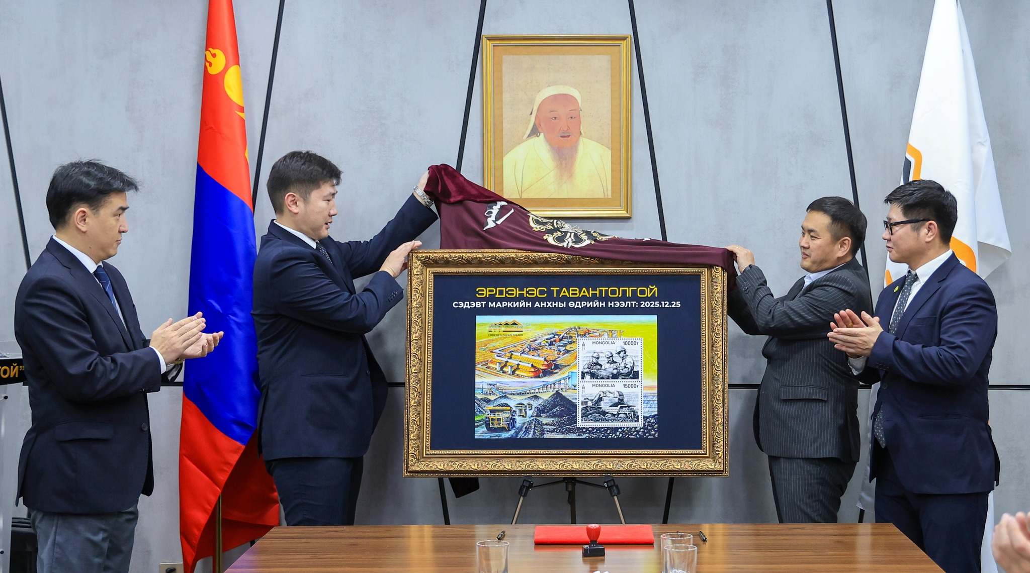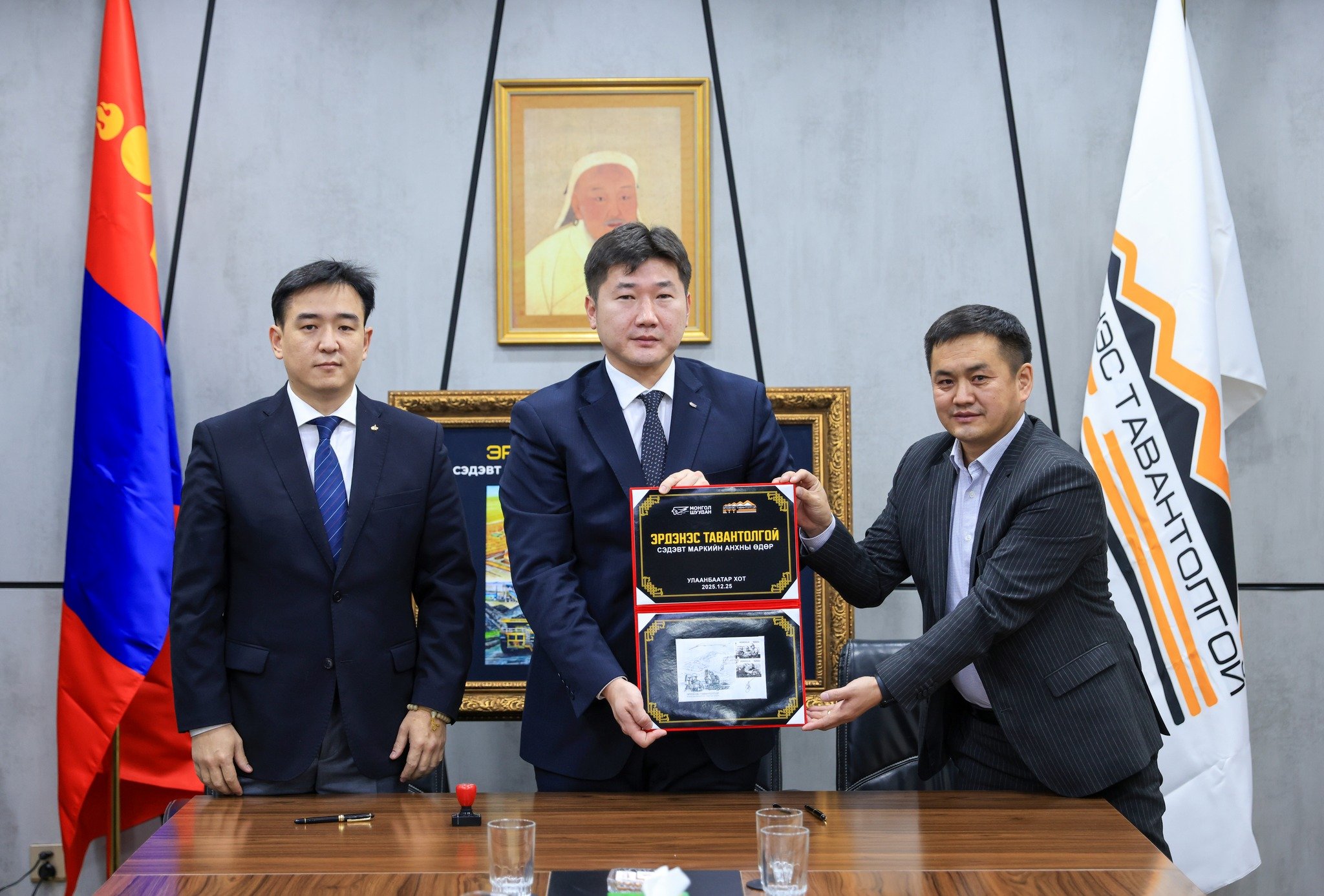 Өнөөдөр Монгол Улсад уул уурхайн салбар үүсэж хөгжсөний түүхт 103 жилийн ой буюу Уурхайчдын баярын өдөр /2025.12.25/ “Эрдэнэс Тавантолгой” сэдэвт марк нээлтээ хийлээ. “Эрдэнэс Тавантолгой” сэдэвт маркийн нээлтэд “Монгол шуудан” ХК-ийн гүйцэтгэх захирал Г.Тэлмэн, Марк, үнэт цаасны хэлтсийн дарга Б.Билгүүн, Ахмад дипломатч, маркийн зөвлөх О.Батсайхан болон “Эрдэнэс Тавантолгой”-н удирдлагууд оролцлоо.