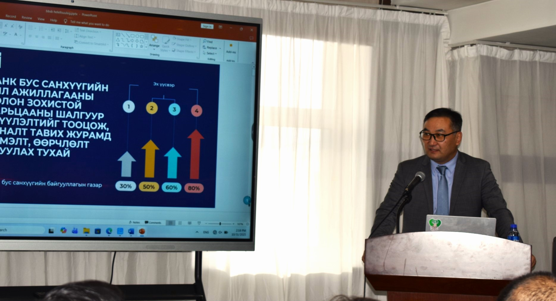 Мөн энэ үеэр Санхүүгийн зохицуулах хорооноос банк бус санхүүгийн салбарт хэрэгжүүлж буй бодлого, арга хэмжээ, салбарын өнөөгийн нөхцөл байдал, тулгамдсан асуудлын талаар мэдээлэл өгч, оролцогчдын саналыг сонслоо. Монголын банк бус санхүүгийн байгууллагуудын холбоотой хамтран зохион байгуулсан хэлэлцүүлэгт салбарын 100 гаруй байгууллагын төлөөлөл оролцсон юм.