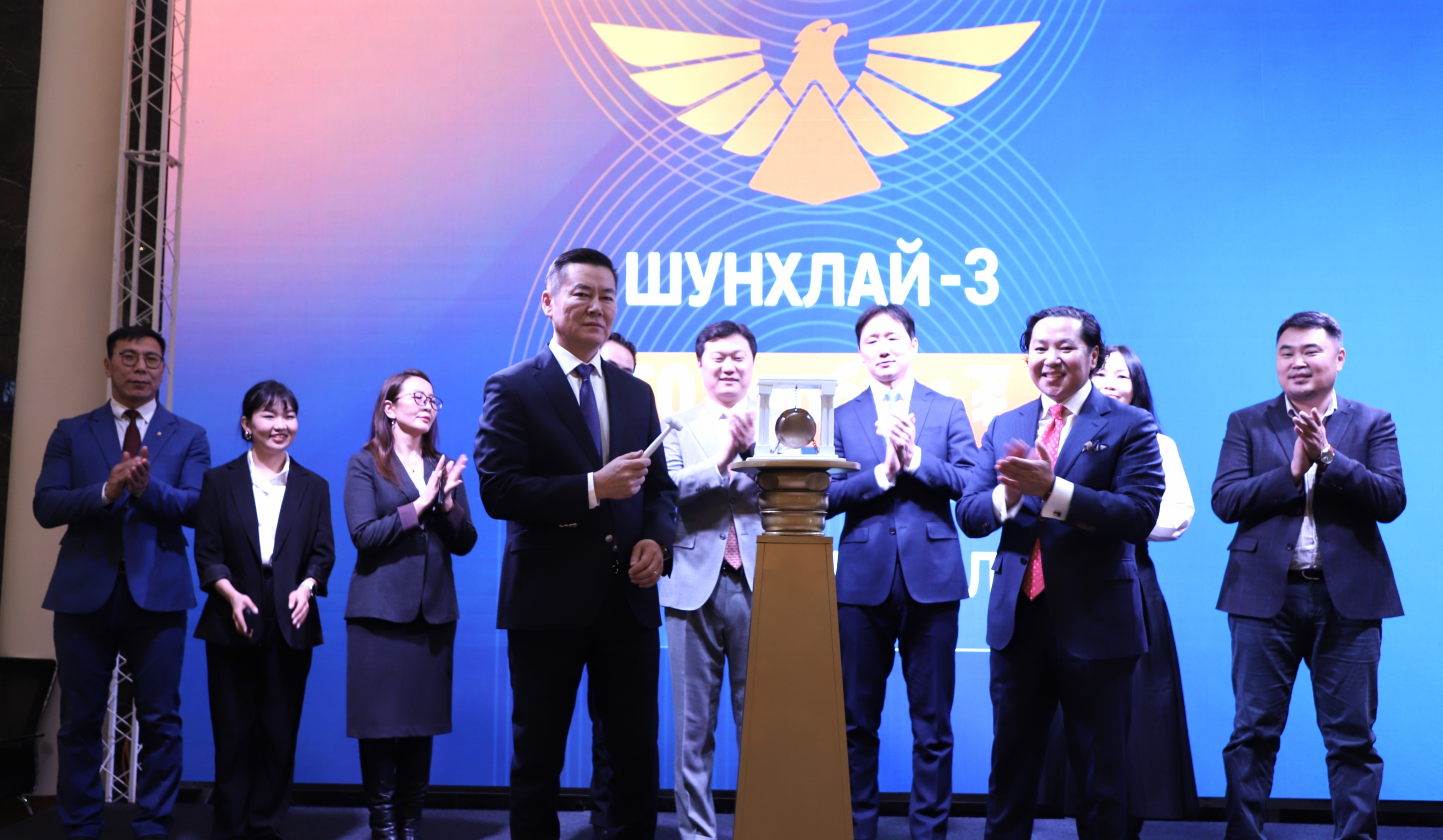 “Шунхлай” ХХК-ийн олон нийтэд нээлттэй санал болгож буй “ШУНХЛАЙ-3” бондын анхдагч зах зээлийн арилжааг нээх цан цохих ёслол өнөөдөр боллоо. Ёслолын ажиллагаанд Санхүүгийн зохицуулах хорооны Үнэт цаасны газрын дарга Б.Дөлгөөн, “Монголын хөрөнгийн бирж” ХК-ийн гүйцэтгэх захирлын үүргийг түр орлон гүйцэтгэгч Т.Хаш-Эрдэнэ, "Шунхлай" ХХК гүйцэтгэх захирал Ж.Мөнхнаран, "Голомт капитал ҮЦК” ХХК гүйцэтгэх захирал С.Ган-Эрдэнэ болон албаны бусад төлөөлөл оролцсон юм.