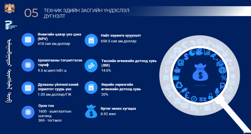 Нийслэлийн Засаг даргын нэгдүгээр орлогч Т.Даваадалай “Нийт төслийн хөрөнгө оруулалт 658 сая ам.доллар. Сонгон шалгаруулалт зарлана. Хувийн хэвшлүүд сонгон шалгаруулалтаар орж ирнэ. Улмаар хувийн хэвшлүүдтэй гэрээний хэлэлцээр хийж тохиролцоно. Үүний дараа дахин НИТХ-аар асуудлыг оруулахаар төлөвлөсөн. Хөрөнгө оруулалтын өртөг нэмэгдэхгүй. 25 жилийн хугацаанд 1КВт цагийг 9.5 ам.цент үнэтэй байхаар тогтож, энэ үнийг гэрээний хугацаанд нэмэхгүй” гэв. “Улаанбаатар түншлэл төв” ХХК-ийн гүйцэтгэх захирал З.Батырбек “Төслийг ашиглалтад оруулснаар жилдээ 200 сая ам.доллар борлуулалт хийхээр төлөвлөсөн байгаа” гэсэн хариултыг өглөө. Эхний 3 жил үндсэн зээлээс чөлөөлөгдөөд, сүүлийн 7 жил үндсэн зээлийн төлбөрийг бүрэн төлж барагдуулахаар төлөвлөсөн” гэсэн хариултыг өглөө.